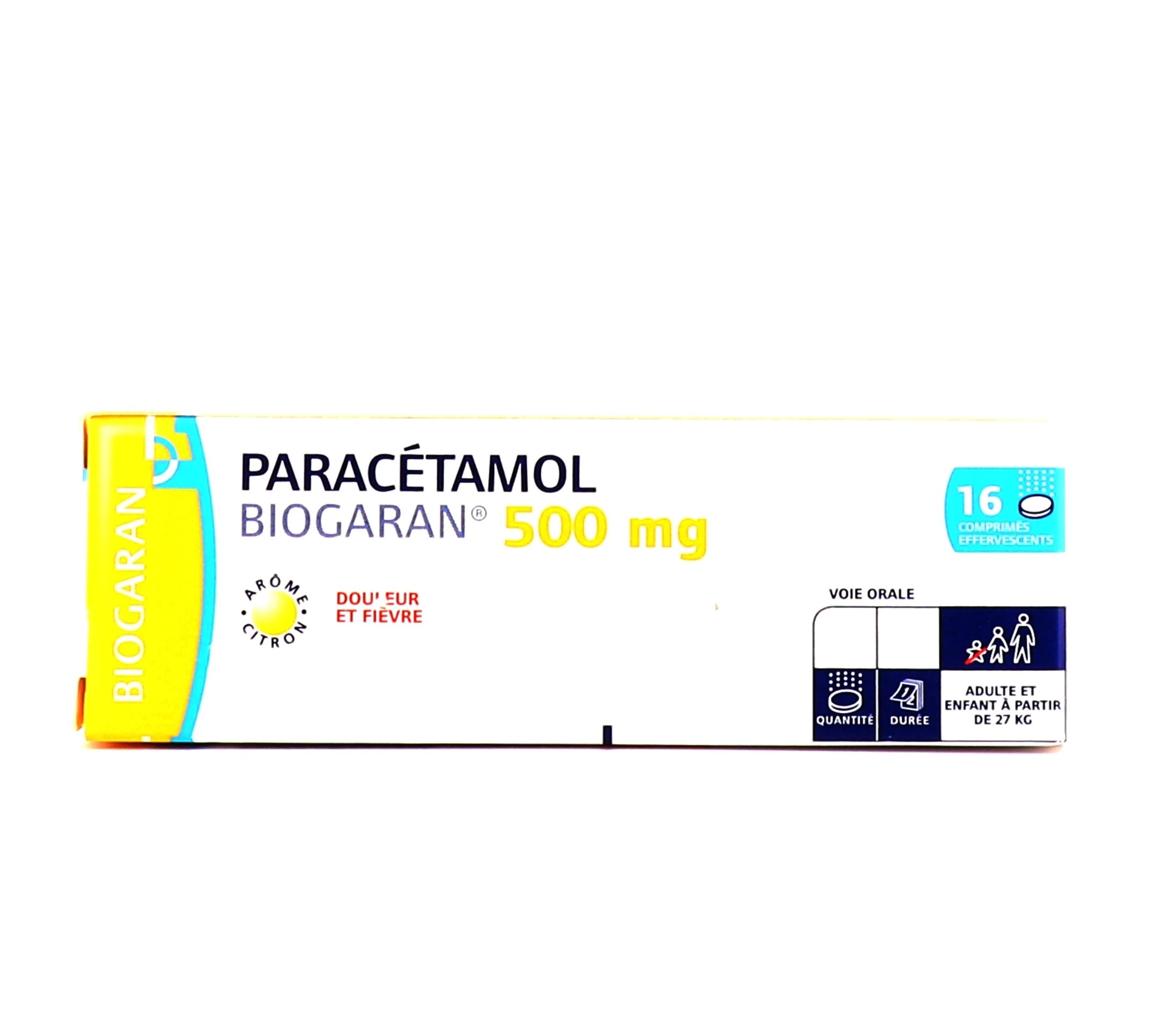 Posologie pour Paracétamol Biogaran 500mg comprimé effervescent - boite de 16 comprimés