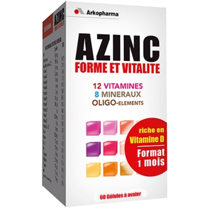Azinc Forme et Vitalité - 60 gélules - 60.0 unites - complexes vitaminés - ArkoPharma | 12,60€ | Acheter |